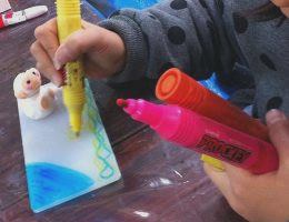 ☆材料:80×167mmのPP板、粘土、水性マーカー